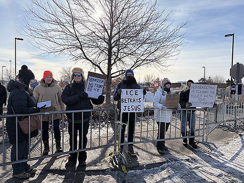 시위대는 ICE를 향해 "생계를 위해 이런 일을 할 필요는 없다", "무고한 사람을 괴롭히지 않는 다른 직업을 찾아라"라고 외쳤다. 연방 요원이 탄 것으로 보이는 차량이 건물에 들어갈 때는 여지 없이 양손 엄지손가락을 아래로 내리며 야유하거나, 오른손 중지를 들어 보였다.