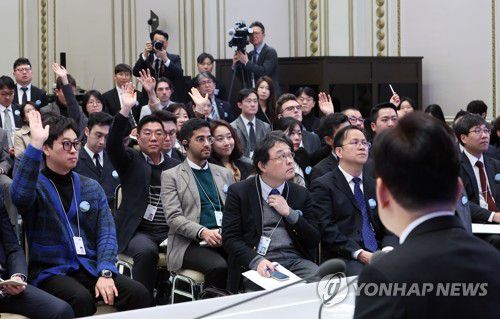 (서울=연합뉴스) 김도훈 기자 = 이재명 대통령이 21일 청와대 영빈관에서 열린 신년기자회견에서 취재진 질문을 받고 있다. 2026.1.21