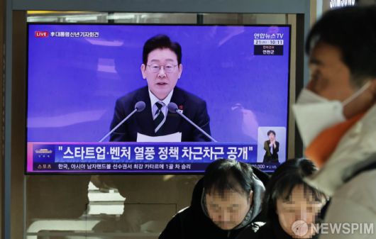 [서울=뉴스핌] 양윤모 기자 = 21일 오전 서울 용산구 동자동 서울역을 찾은 시민들이 ‘함께 이루는 대전환, 모두 누리는 대도약’의 슬로건으로 개최된 이재명 대통령의 ‘2026년 신년 기자회견’을 시청하고 있다. 이번 신년 기자회견은 용산 대통령실에서 청와대로 온 뒤 열리는 첫 공식 기자회견으로 청와대 영빈관에서 내외신 기자 160여명이 참석한 가운데 90분간 진행됐다. 2026.01.21 yym58@newspim.com