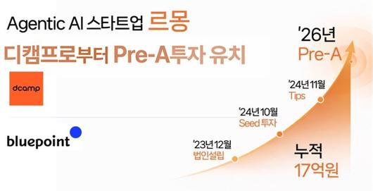 외식업 AI 전문 기업 르몽은 은행권청년창업재단 디캠프와 블루포인트파트너스로부터 총 10억원 규모의 프리 A(Pre-A) 투자를 유치했다고 21일 밝혔다. 이번 투자로 르몽의 누적 투자 유치 금액은 17억원으로 늘었다.