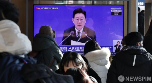 [서울=뉴스핌] 양윤모 기자 = 21일 오전 서울 용산구 동자동 서울역을 찾은 시민들이 ‘함께 이루는 대전환, 모두 누리는 대도약’의 슬로건으로 개최된 이재명 대통령의 ‘2026년 신년 기자회견’을 시청하고 있다.  이번 신년 기자회견은 용산 대통령실에서 청와대로 온 뒤 열리는 첫 공식 기자회견으로 청와대 영빈관에서 내외신 기자 160여명이 참석한 가운데 90분간 진행됐다. 2026.01.21 yym58@newspim.com