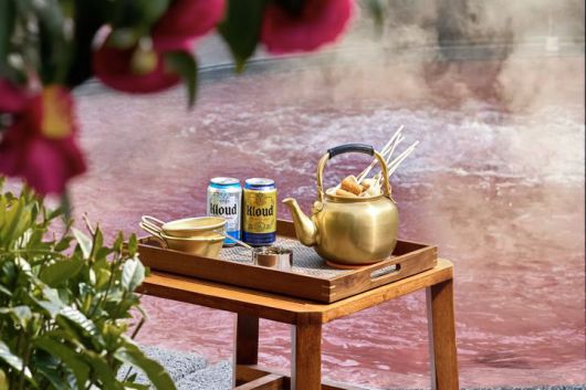 아쿠아 헤이븐은 다양한 꽃·허브·과일 등 매일 다른 테마로 선보이는 온수 자쿠지(욕조)다. 월·화요일에는 장미와 라벤더, 수·목요일에는 자스민과 페퍼민트, 주말에는 유자와 석류 등으로 꾸민다. 주전자 어묵탕은 5월30일까지 한정 판매한다.