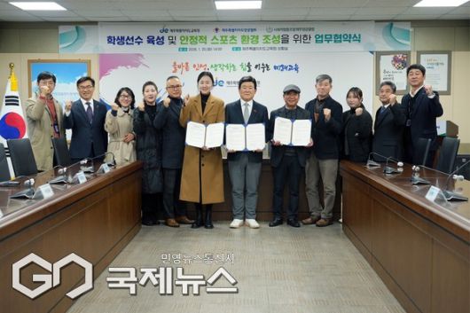 (제주=국제뉴스) 문서현 기자 = 제주도교육청이 학교 밖 스포츠클럽에 소속된 학생들에게 필요한 예산 지원과 지원금의 투명한 관리를 위해 업무협약을 체결하고 학생선수 육성 및 안정적 스포츠 환경 조성에 나선다.