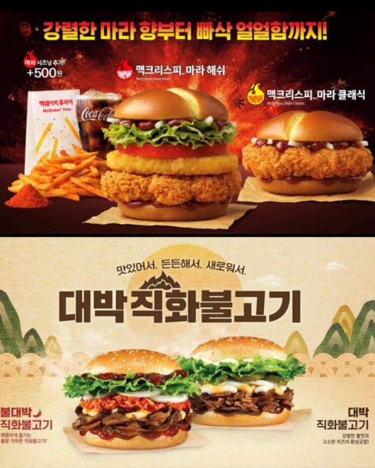 20일 관련 업계에 따르면 한국맥도날드는 최근 ‘맥크리스피 마라 버거’ 2종을 선보였다. 기존 치킨 패티에 마라 소스를 결합한 제품으로, 매운맛 선호도가 높은 국내 소비자 취향을 정면으로 겨냥했다.