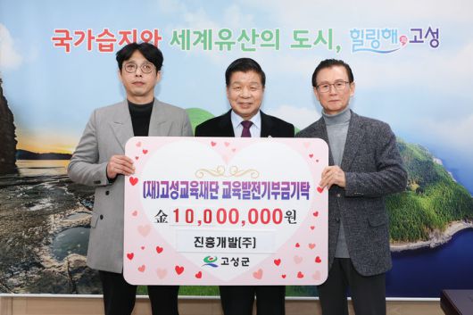 [고성(경남)=뉴시스] 신정철 기자= (재)고성교육재단은 진흥개발(주) 김원석 대표가 지역 학생들의 교육환경 개선과 지역인재 양성을 위해 써달라며 1000만원을 교육발전기부금으로 기탁했다고 21일 밝혔다.사진은 김원석 대표(사진, 왼쪽)가 이상근 고성군수(가운데)와의 교육발전기부금기탁 기념사진 촬영 모습.(사진=고성군 제공).2026.01.21. photo@newsis.com *재판매 및 DB 금지 |