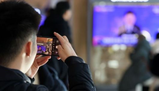 21일 서울 용산구 서울역 대합실에서 시민들이 이재명 대통령 신년 기자회견 방송을 지켜보는 도중 핸드폰으로 사진을 찍고 있다. <ⓒ투자가를 위한 경제콘텐츠 플랫폼, 아시아경제(www.asiae.co.kr) 무단전재 배포금지>