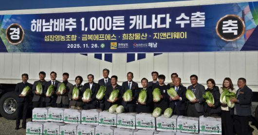 전남도는 2025년 농수산식품 수출이 역대 최고 실적을 기록했다. 사진은 해남배추 캐나다 수출 선적식 모습./전남도 |