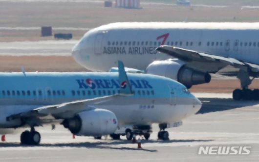 [서울=뉴시스]배훈식 기자 = 대한항공과 아시아나항공 통합 분수령인 한진칼의 제3자 배정 유상증자와 관련 가처분 신청 결과 발표가 예정된 1일 오후 서울 강서구 김포국제공항 국내선 청사 전망대에서 바라본 계류장에 각 항공사의 비행기가 주기돼 있다. 2020.12.01. dahora83@newsis.com |