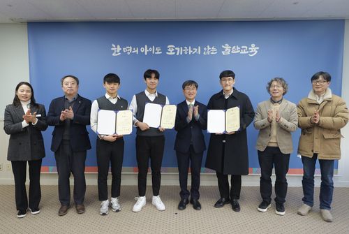 고헌중 김우빈 교사와 대송고 2학년 윤재준, 화암고 2학년 문현서 학생이 '안전 문화 확산 유공자 표창'을 받았다.