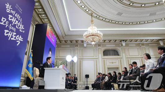 (서울=뉴스1) 이재명 기자 = 이재명 대통령이 21일 청와대 영빈관에서 열린 신년 기자회견에서 취재진 질문에 답변하고 있다. 2026.1.21/뉴스1