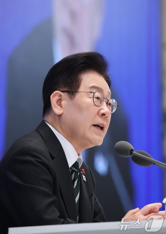 (서울=뉴스1) 이재명 기자 = 이재명 대통령이 21일 청와대 영빈관에서 열린 신년 기자회견에서 취재진 질문에 답변하고 있다. 2026.1.21/뉴스1