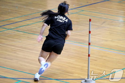(대구=뉴스1) 공정식 기자 = 21일 오전 대구 달서구 계명대학교 성서캠퍼스 체육관에서 열린 '2026학년도 대입 정시모집 체육학과 실기고사'에서 한 수험생이 Z자 달리기를 하고 있다. 2026.1.21/뉴스1