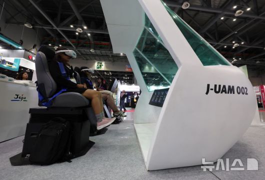 [고양=뉴시스] 김명년 기자 = 3일 오전 경기 고양시 킨텍스에서 열린 '2024 월드 스마트시티 엑스포'에서 관람객이 제주형 도심항공교통(UAM)을 VR을 이용해 체험하고 있다. 2024.09.03. kmn@newsis.com |