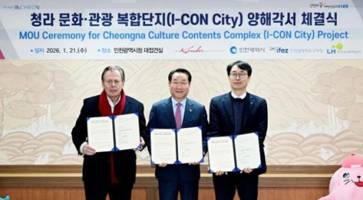 인천경제자유구역청은 21일 인천시청에서 미국 플로리다주 호스피탈리티 기업 케슬러 컬렉션(The Kessler Collection)과 한국토지주택공사(LH)와 함께 청라국제도시 내 ‘청라 문화·관광 복합단지(청라 I-CON City) 프로젝트’ 추진을 위한 양해각서를 체결했다고 21일 밝혔다.