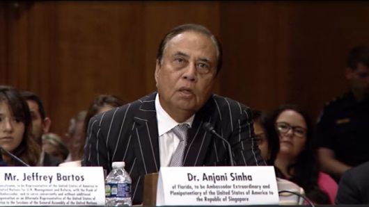지난해 7월 미국 싱가포르 주재 대사로 지명된 안자니 신하 박사가 상원 외교관계위원회 인사청문회에서 답변하고 있는 모습/미국 상원 외교위원회 캡쳐 |