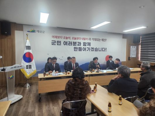 최 군수는 모두발언에서 "지역민들의 건의사항을 속 시원히 답하지 못 하는 것은 일부분은 충남도의회와 예산군의회의 승인이 남아 있기 때문"이라며 "많은 사업이 관철 될 수 있도록 최선의 노력을 다하겠다"고 약속했다.