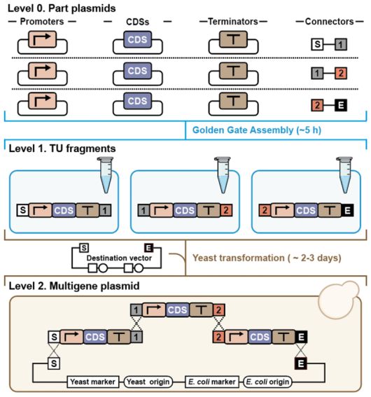 연구팀은 골든 게이트 조립으로 TU 단편을 만든 뒤 이를 효모에 넣어 한 번에 큰 구조체인 ‘다중 유전자 경로’를 완성하는 방식으로 공정을 단순화했다.
