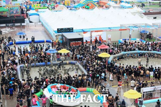 2022년 보령해양머드박람회 기간 충남 보령시 대천해수욕장 일원에서 방문객들이 머드풀 체험을 즐기는 모습. /보령시 |