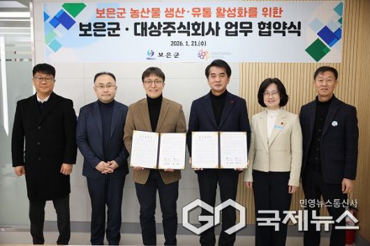 군은 21일 대상 주식회사와 '보은군 농산물 생산·유통 활성화를 위한 업무협약(MOU)'을 체결하고, 스마트농업 확산과 농산물 유통 확대를 위한 협력 체계를 구축한다.