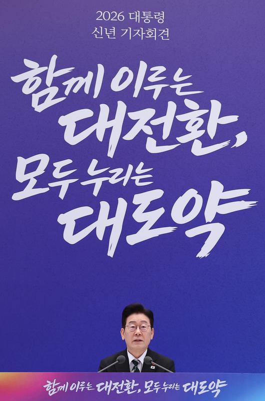 이재명 대통령이 21일 청와대 영빈관에서 열린 신년기자회견에서 발언하고 있다. [연합] |