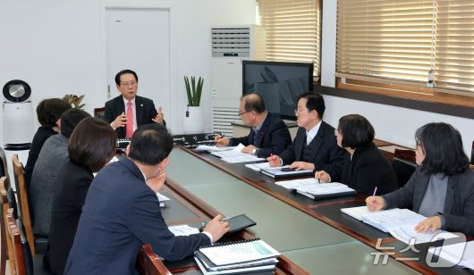 충북 괴산군이 21일 군수실에서 민선 8기 공약·주요현안사업 추진상황 보고회를 열고 있다.(괴산군 제공, 재판매 및 DB금지)/뉴스1 |