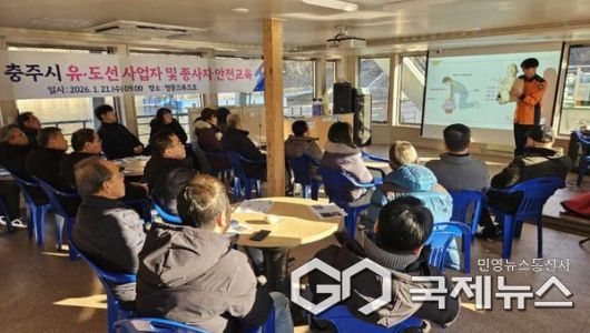(충주=국제뉴스) 김상민 기자 = 충북 충주시는 21일 충주호크루즈 충주선착장에서 관내 유·도선 사업자 및 종사자 20여 명을 대상으로 '2026년 유람선 사업자 및 종사자 안전교육'을 실시했다고 밝혔다.