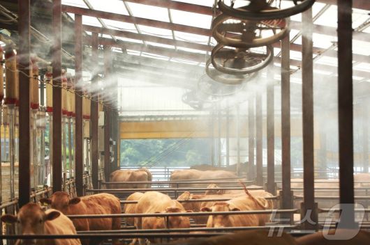 지난해 7월 말, 제천시 봉양읍 명암리 한우 축사 살수시설./뉴스1 ⓒ News1 손도언 기자 |