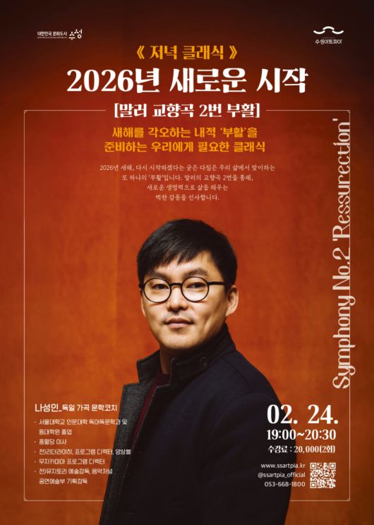 이어 ▲직장인을 위한 ‘저녁 클래식’은 풍월당 이사 나성인 평론가가 맡아 ‘말러 교향곡 2번 부활’을 주제로 겨울밤의 정취와 예술적 영감이 공명하는 시간을 이끈다.
