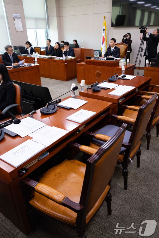 (서울=뉴스1) 유승관 기자 = 21일 서울 여의도 국회에서 열린 제431회 국회(임시회) 법제사법위원회 제2차 법안심사제1소위원회에 국민의힘 의원들이 불참해 자리가 비어있다. 2026.1.21/뉴스1