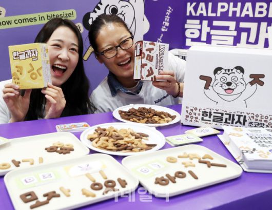 [이데일리 김태형 기자] 21일 서울 삼성동 코엑스에서 열린 제23회 대한민국 교육박람회에서 관계자들이 한글과자를 홍보하고 있다. 대한민국 교육박람회는 아시아 최대 규모로 570개사 1500여 부스에서 스마트 교구 및 기자재, 인공지능형 교육 콘텐츠, 교육환경 시설 등을 23일까지 전시한다.