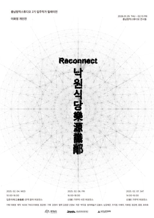 또한 이번 전시는 충남 고유의 문화 자산인 ‘중고제 가무악’을 현대적으로 재해석한 퍼포먼스 〈Moment of Reconnect〉를 운영한다. 월요일은 휴관이며, 화요일부터 일요일 오전 10시부터 오후 6시까지 무료로 관람할 수 있다.