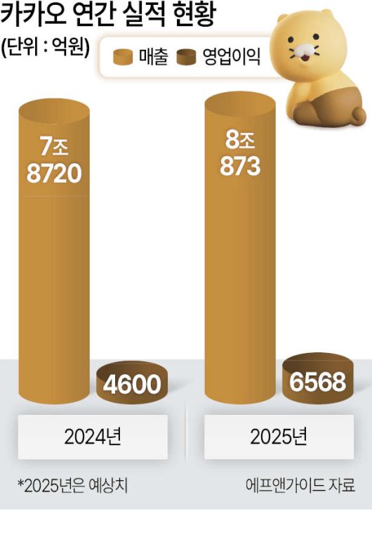 이어 카카오는 매출 8조873억원, 영업이익 6568억원을 기록할 것으로 집계됐다. 각각 전년 대비 2.7%, 49% 상승한 숫자다.