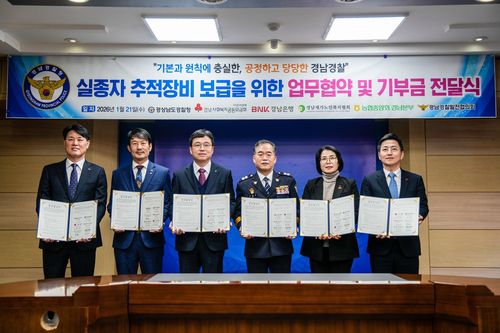 깅종철 경남경찰청장은 "이번 사업으로 실종자 위치를 신속히 확인해 안전을 확보할 수 있을 것으로 기대한다"며 "앞으로도 지역사회와 실종 종합 대응체계를 고도화해 도민 안전을 책임지겠다"고 말했다.
