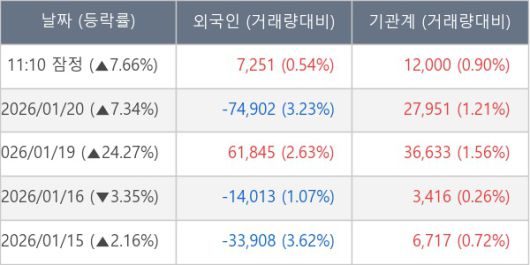 ※ 사모펀드 등 일부 기관의 순매매량은 표시되지 않음