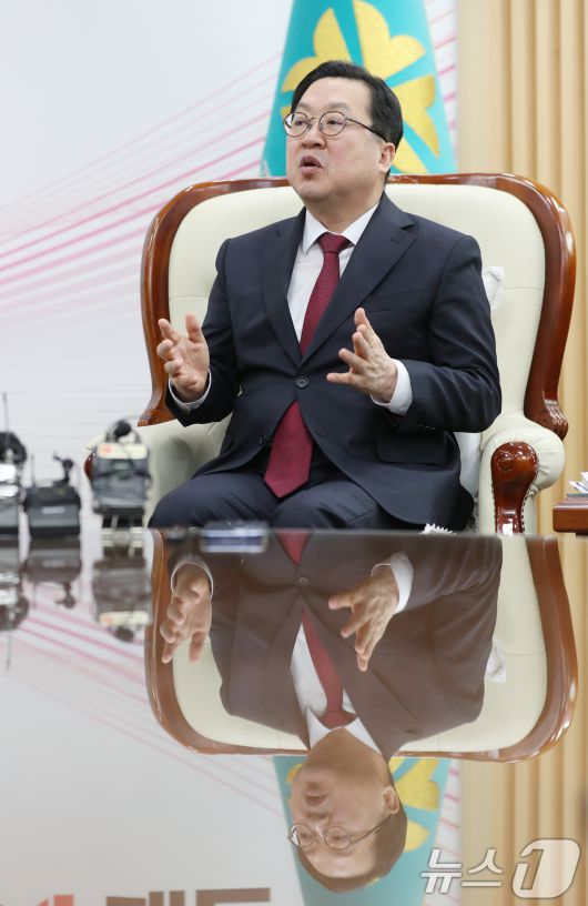(대전=뉴스1) = 이장우 대전시장이 21일 대전시청 접견실에서 김태흠 충남도지사와 대전·충남 행정통합 관련 긴급 회동에서 발언하고 있다.2026.1.21/뉴스1presskt@news1.krCopyright ⓒ 뉴스1. All rights reserved. 무단 전재 및 재배포, AI학습 이용 금지.