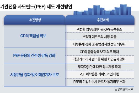 우선 금융당국이 지난달 말 발표한 ‘PEF 제도 개선 방안’을 언급하며 건전한 투자문화 정착을 당부했다. 과도한 차입이나 복잡한 거래 구조 대신 성장 가능성이 높은 기업을 발굴하고 경영혁신을 통해 가치를 창출해달라는 내용이다.