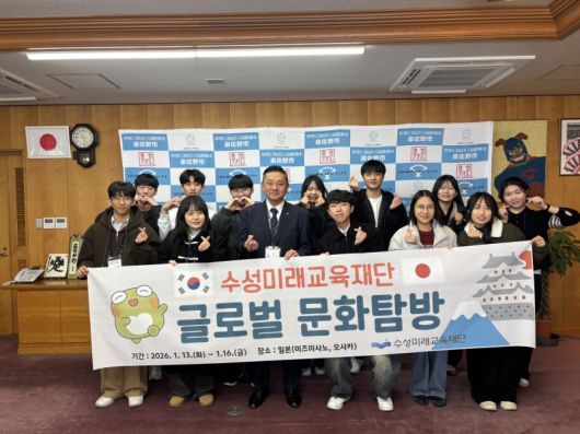 대구 수성미래교육재단(이사장 김대권)은 지난 13일부터 16일까지 수성구 고등학생 12명을 일본 이즈미사노시에 탐방단으로 파견해 글로벌 문화 탐방 프로그램을 운영했다고 밝혔다.