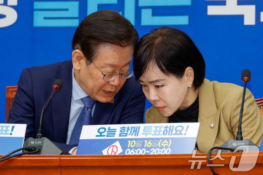 이재명 더불어민주당 대표(왼쪽)와 전현희 최고위원. 2024.10.16/뉴스1 ⓒ News1 안은나 기자 |