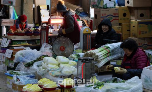 [포토]역대급 한파에도 미소 잃지 않는 상인들