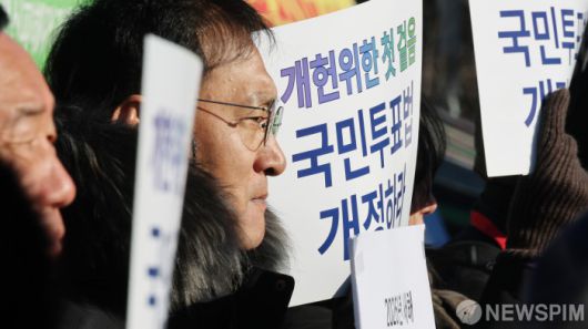 [서울=뉴스핌] 이형석 기자 = 시민주도 헌법개정 전국 네트워크가 21일 오전 서울 여의도 국회 앞에서 ‘11년째 직무유기, 국민투표법 개정 않는 국회 규탄한다!’ 신년기자회견을 열고 있다. 2026.01.21 leehs@newspim.com