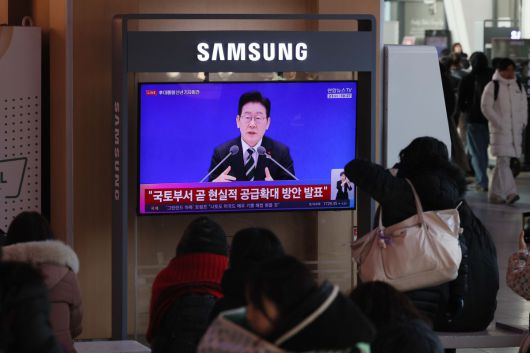21일 서울역에서 시민들이 이재명 대통령 신년 기자회견 텔레비전 생중계를 시청하고 있다. 신태현 기자 holjjak@ |