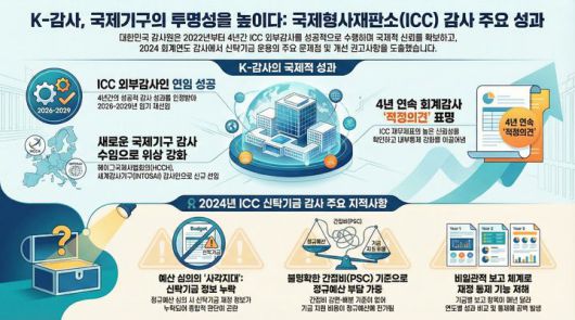 이런 성과를 인정받아 감사원은 지난해 6월 ICC 외부감사인 재선임(2026∼2029년) 계약을 체결했다.