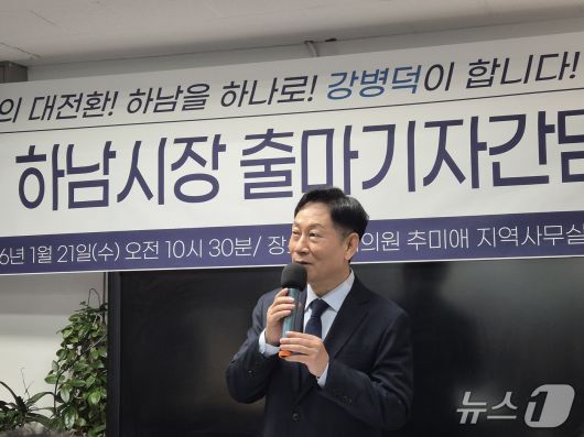 강병덕 더불어민주당 당대표 정책특보가 21일 추미애 국회의원 지역 사무실에서 기자회견을 열고 제9회 동시지방선거 경기 하남시장 출마를 선언하고 있다.2026.01.21/뉴스1 양희문 기자 |