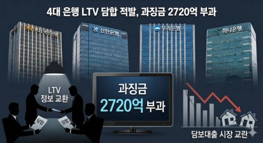 [세종=뉴스핌] 김범주 기자 = 국내 4개 대형은행인 국민·신한·우리·하나은행이 부동산 담보대출의 핵심 조건인 담보인정비율(LTV) 정보를 은밀히 교환하며 담합해 담보대출 시장을 교란했다는 혐의로 2720억원의 과징금을 부과받게 됐다.