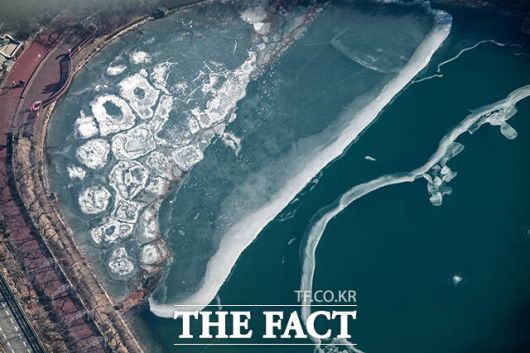 [더팩트ㅣ남윤호 기자] 북쪽에서 내려온 찬 공기로 전국 대부분 아침 기온이 영하 10도 아래로 떨어진 21일 오전 서울 송파구 석촌호수가 얼어있다.