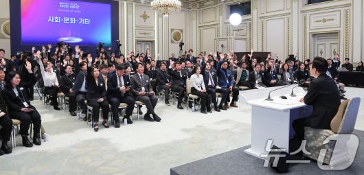 (서울=뉴스1) 이재명 기자 = 이재명 대통령이 21일 청와대 영빈관에서 열린 신년 기자회견에서 취재진 질문을 받고 있다. 2026.1.21/뉴스12expulsion@news1.krCopyright ⓒ 뉴스1. All rights reserved. 무단 전재 및 재배포, AI학습 이용 금지.
