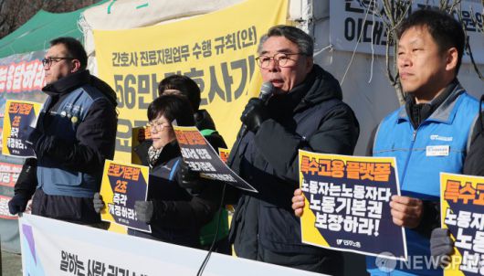 [서울=뉴스핌] 이형석 기자 = 전국민주노동조합총연맹이 21일 오전 서울 여의도 국회 앞에서 ‘근로기준법 개정으로 특수고용·플랫폼 노동자 노동기본권 보장하라!’ 기자회견을 열고 있다. 2026.01.21 leehs@newspim.com