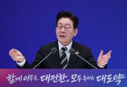 | 이재명 대통령이 21일 청와대 영빈관에서 열린 신년기자회견에서 발언하고 있다. 2026.1.21 / 사진=연합뉴스 |