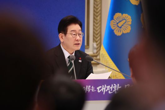 이재명 대통령이 21일 오전 청와대 영빈관에서 2026 신년 기자회견 ‘함께 이루는 대전환, 모두 누리는 대도약’에서 발언하고 있다. 청와대사진기자단 |