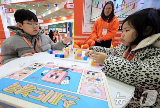 (서울=뉴스1) 이호윤 기자 = 21일 서울 강남구 코엑스에서 열린 ‘2026 대한민국 교육박람회’를 찾은 아이들이 교구를 체험하고 있다. 이번 박람회는 “배움을 배우는 오늘, 내일을 시작하는 우리”를 주제로, AI 시대를 넘어 AGI(범용인공지능)로 확장되는 교육 환경의 변화와 그 실질적 대응책을 다루며 글로벌 빅테크와 국내 대표 에듀테크 기업들이 학교 현장에서 즉시 활용할 수 있는 최신 기술을 선보인다. 2026.1.21/뉴스1